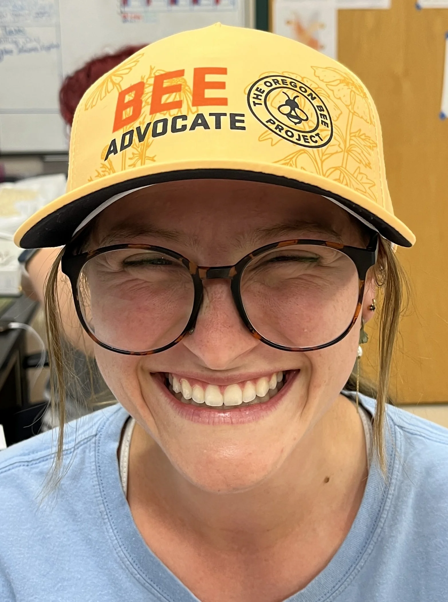 The OBA will have a strong presence at the fair and you are needed to help share our information. Sign up for shifts here and share your enthusiasm for Oregon bees. You will also get one of these swanky new hats in the process (on the head of Brooke Ruby in the Pollinator Health Lab who is working on the vineyard project). Sign up here (and indicate you are a Master Melittologist) under “Group/Club.”