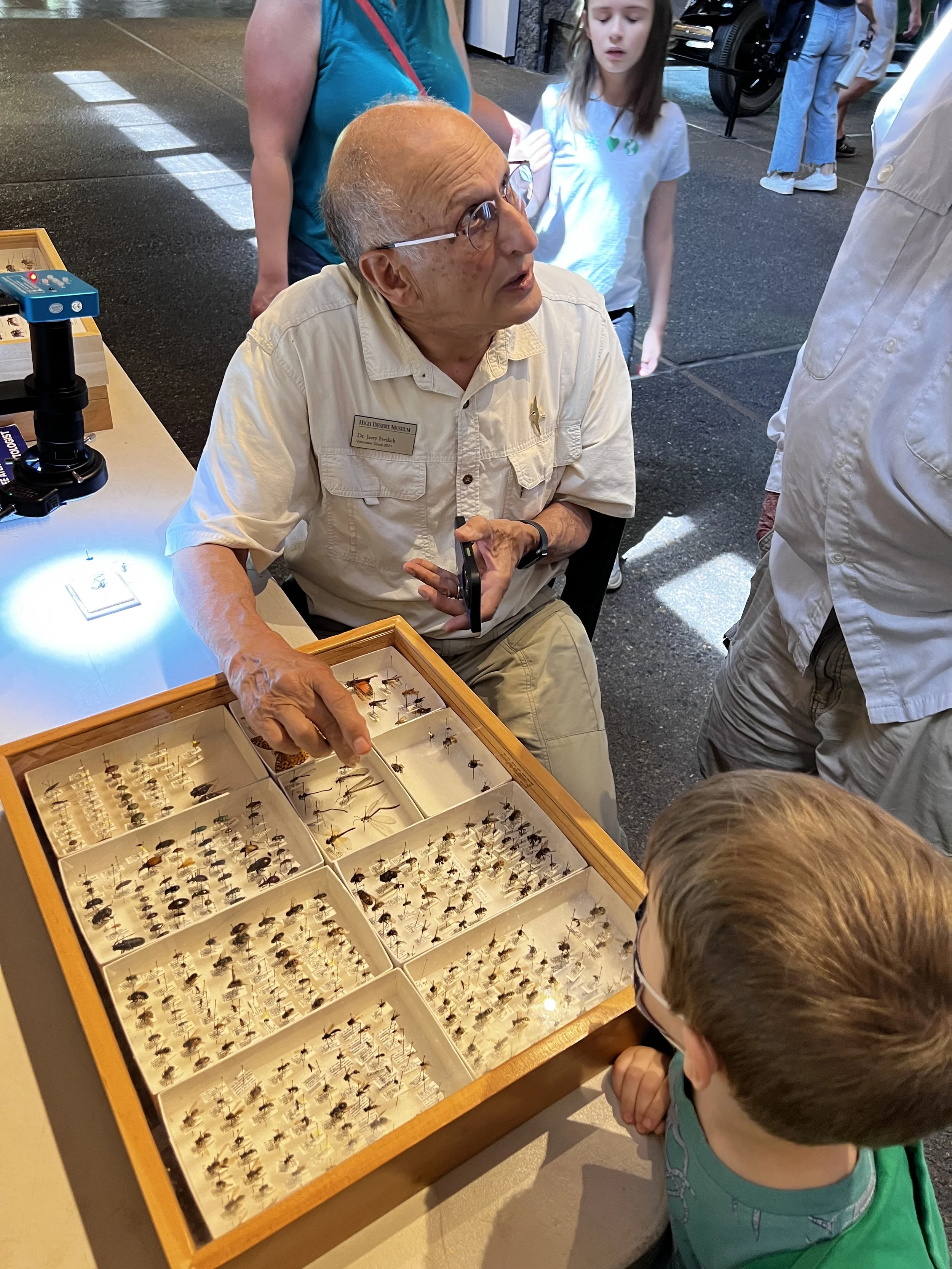 OBA members are everywhere! Your editor was delighted to find long-time OBA member Jerry Freilich narrating the raptor show at the High Desert Museum in Bend, Oregon. Afterwards, Jerry shared his insect collection, including plenty of bees, with an interested crowd.