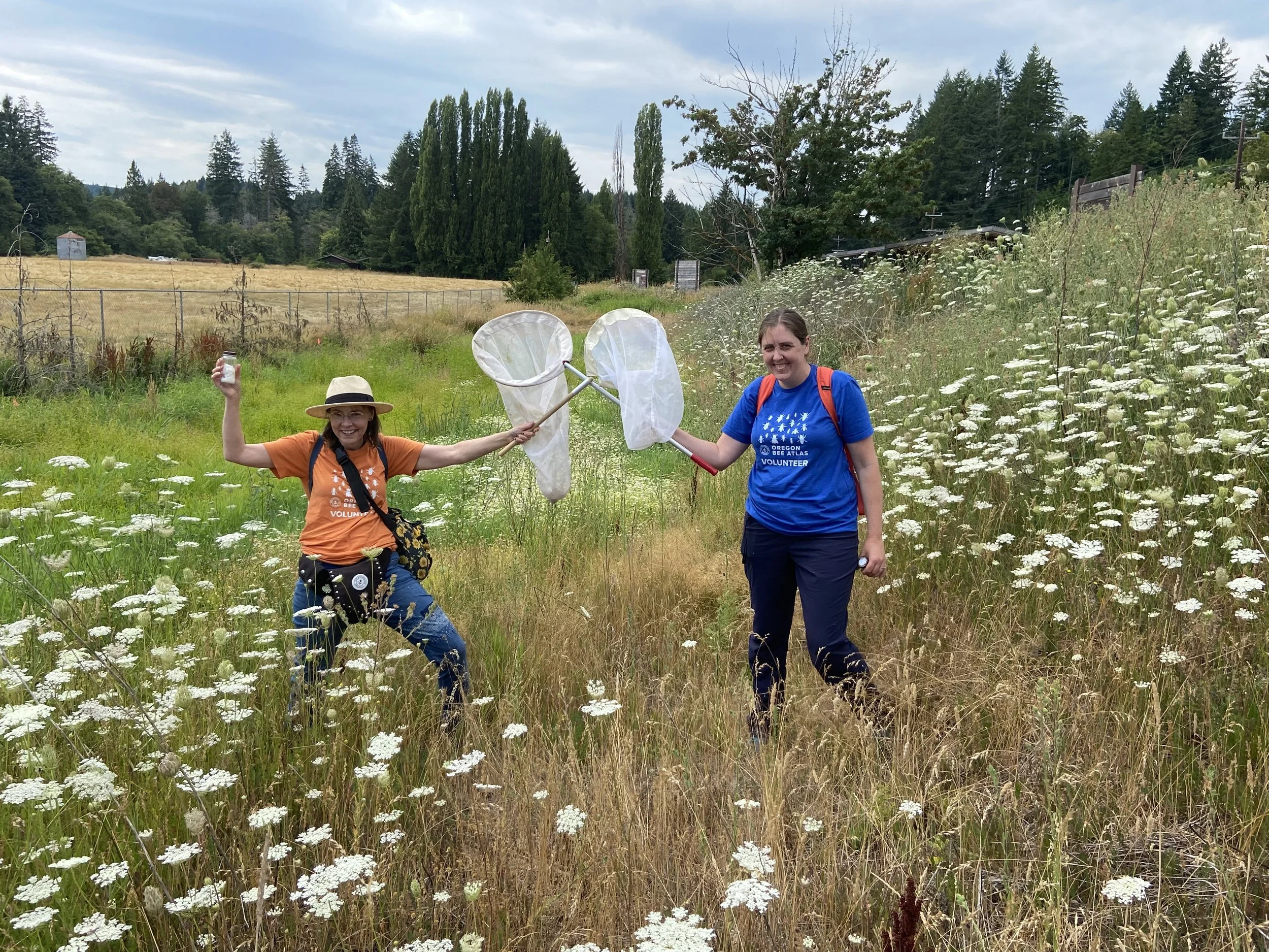 Robin Gill hosted her first collection day in Scappoose August 5th. A long-time birder, she knows all the secret spots to collect bees there. This is where the first Grumpy Bee came from, and recently Jessica Hird found a stellis in her back yard - what other bees lurk in the forest, trails and clear-cuts? In this long under-surveyed county, the Columbia OBA members are determined to find out what bees are there.