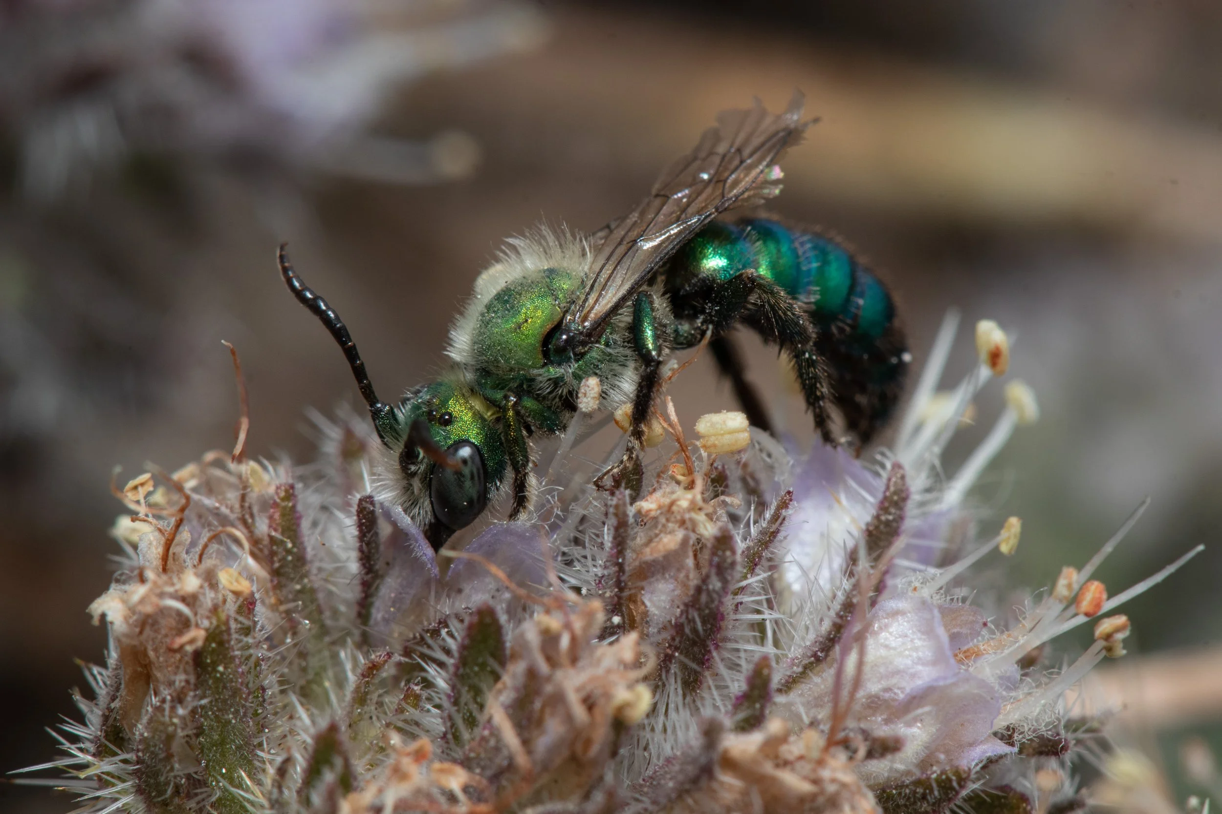 A beautiful Hoplitis louisae captured by August Jackson on the collection event at the Steens Mountain July 2023. This bee is endemic to the Steens and a specialist on phacelia hostata.