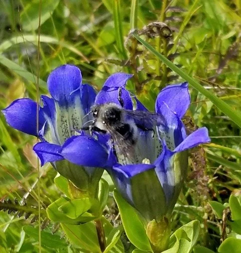 Beautiful bee, beautiful flower. An unidentified bumble on Gentiana calycosa aka Explorer's Gentian, spotted last month in the Wallowas near John Henry Lake by Jan and RB Buschman.