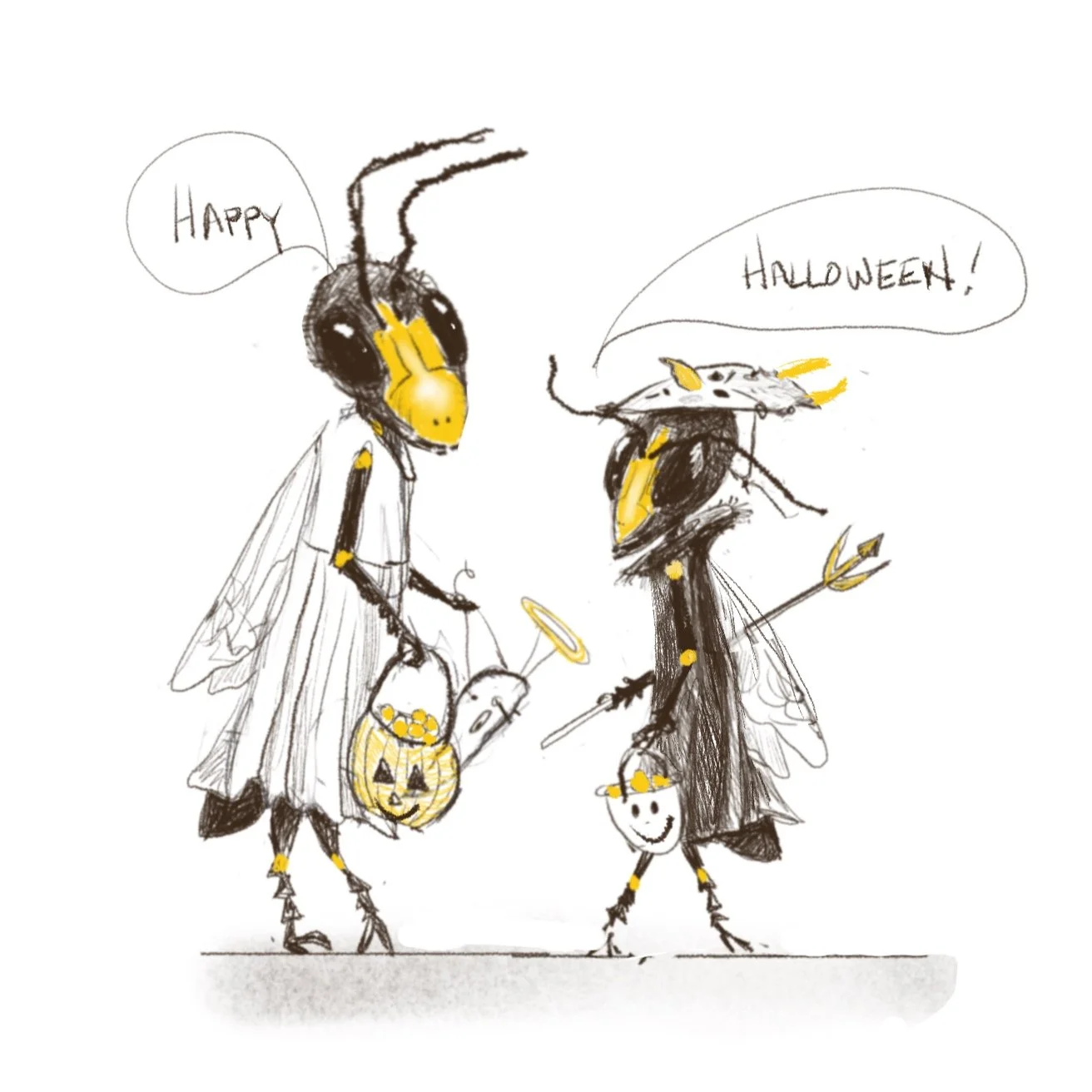 Always prepared for Halloween or fancy dress bee balls, Hylaeus bees are also known as Masked Bees. Look for small black bees with yellow markings on their face and integument. Do you have some in your boxes?? Would you trade them for a fun pack of M&M’s and a mini Snickers bar?